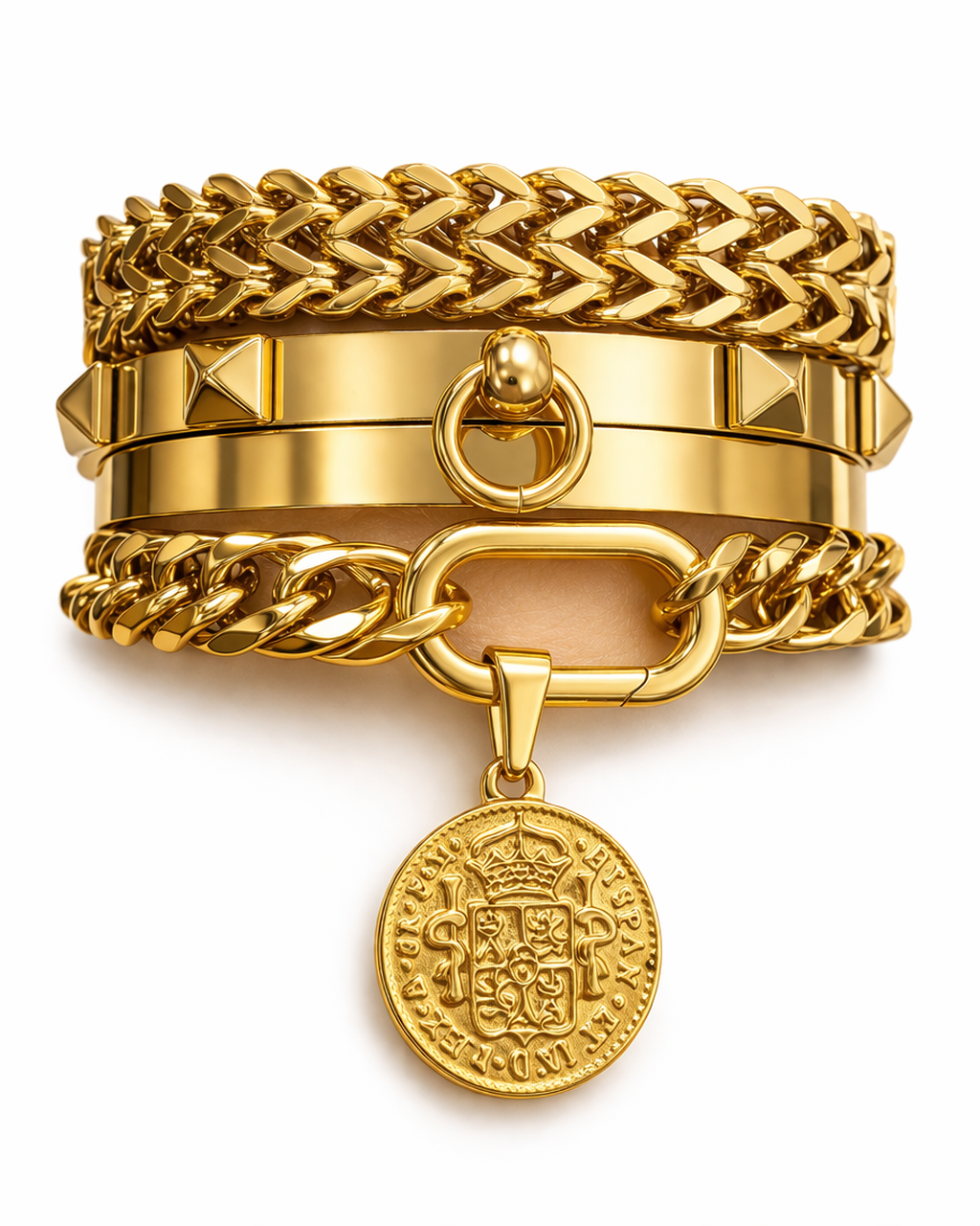 Iconic Blend Stack Crafted in premium 316L stainless steel (surgical grade) Finished in 18K gold...